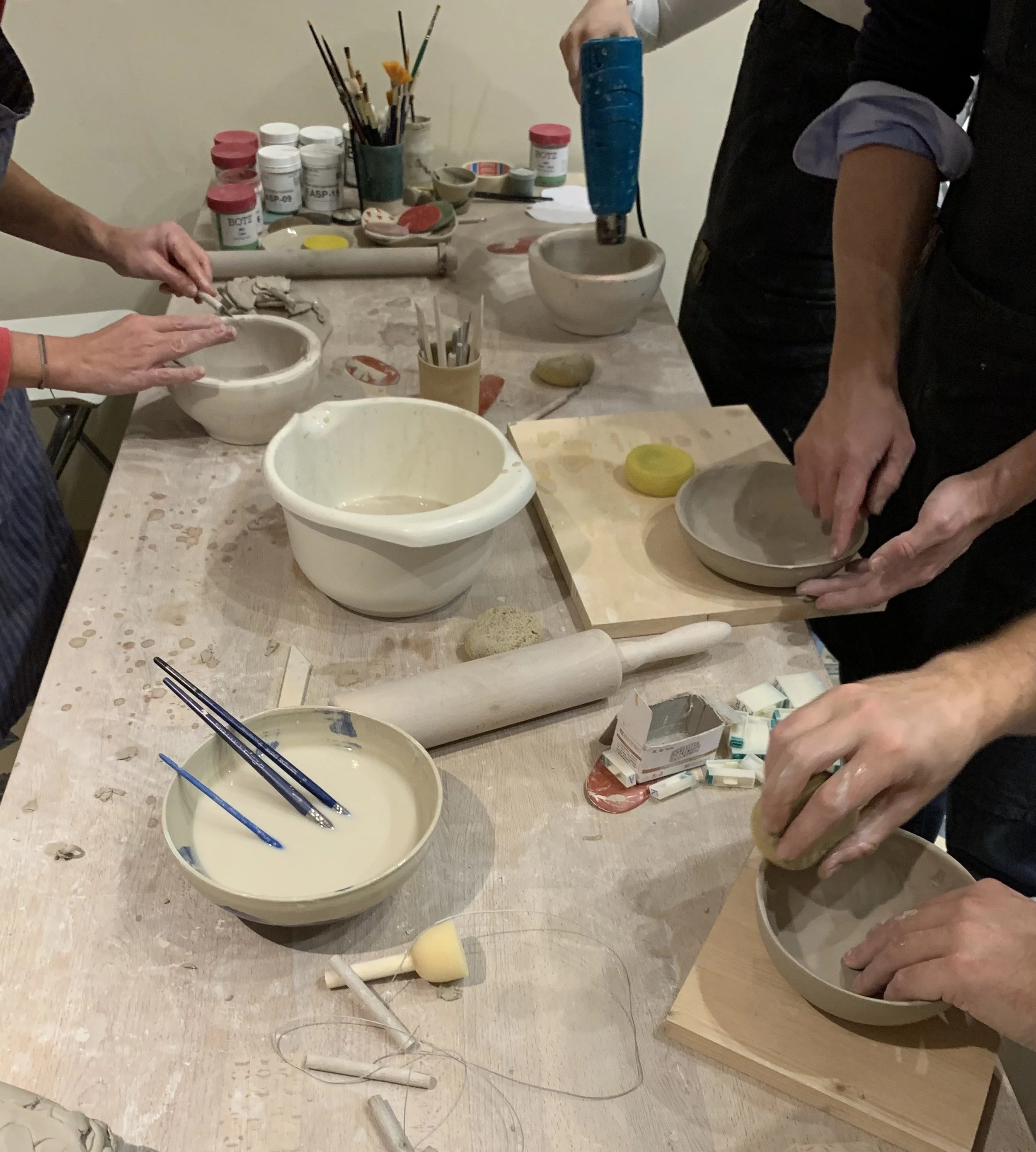 Dabei entdecken wir gemeinsam das Töpfern an der Drehscheibe (Drehen) und das Modellieren von Hand.